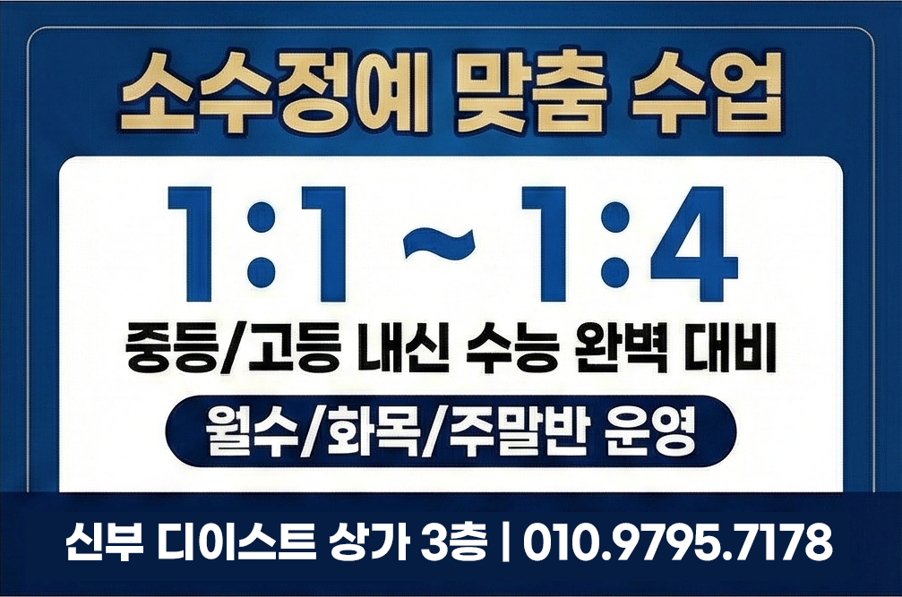 1:1~1:4 소수 정예 수업으로 학생들이 편안하게 집중적으로 교육받을 수 있습니다.